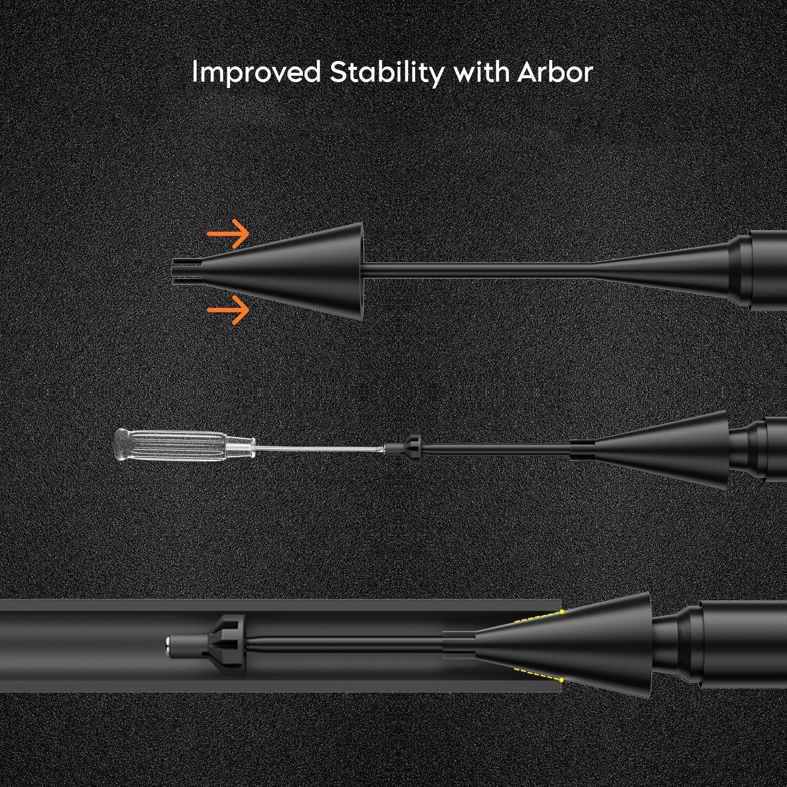 Dual-point arbor system locks into barrels with 2X more contact surface vs. competitors. No wobble. No drift. Just dead-on alignment.