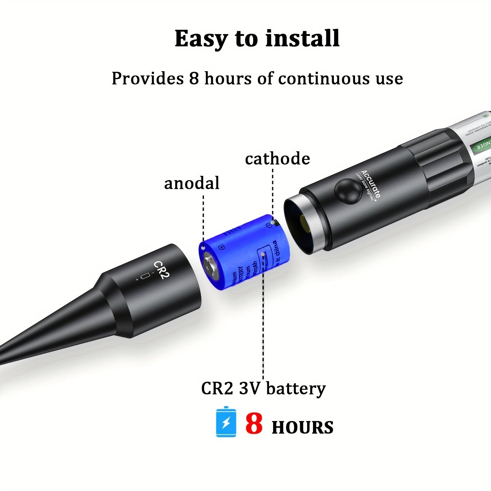 Includes 2x CR2 batteries. 8-hour continuous runtime per session – outlasts range days and hunting trips.